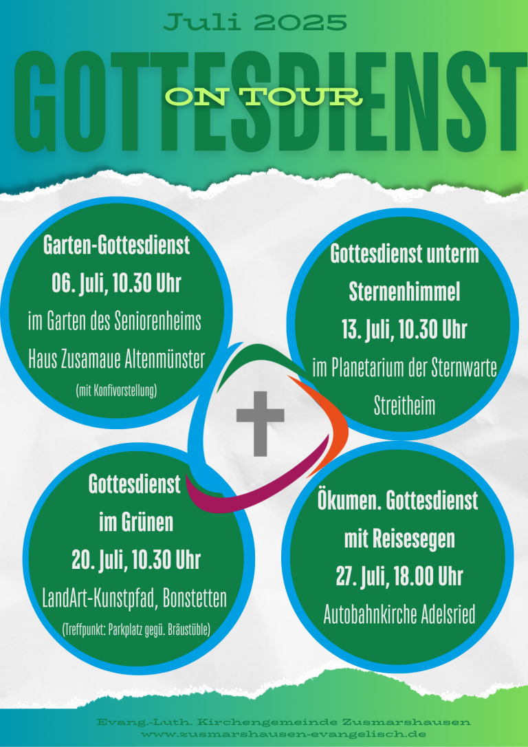 Alle Beiträge Gottesdienst on Tour – Gartengottesdienst in Altenmünster Weiterlesen Gottesdienst on Tour im Juli Weiterlesen Friedensmarsch, Bericht Weiterlesen Nachruf für Uwe Lang Weiterlesen Ökumen. Friedensmarsch, 07.06. Weiterlesen Susanne Ortner & Olivier Lob: „Viva a Vida!“, Konzert am 18.07. Weiterlesen Pressemitteilung zu den vergangenen Gemeindeversammlungen Weiterlesen So war das Tauffest am See (Bericht) Weiterlesen Wetter-Update Tauffest Weiterlesen « Vorige 1 2 3 4 5 6 7 8 9 10 Nächste »