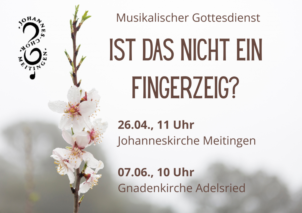 Am 7. Juni feiern wir wieder mal einen muikalischen Gottesdienst in der Gnadenkirche. Zu Gast ist der Johannes-Chor aus Meitingen. Im Mittelpunkt des Gottesdienstes stehen das Lied „Freunde, dass der Mandelzweig“ und der Wunsch nach Frieden.